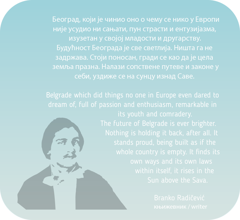 Градови нису само велика насеља — они у себи морају да носе идеје прогреса. Београд је 19. век започео као мало место уз Калемегданску тврђаву, а идеје прогреса стизале су са потребом за формирањем државности и са индустријализацијом.