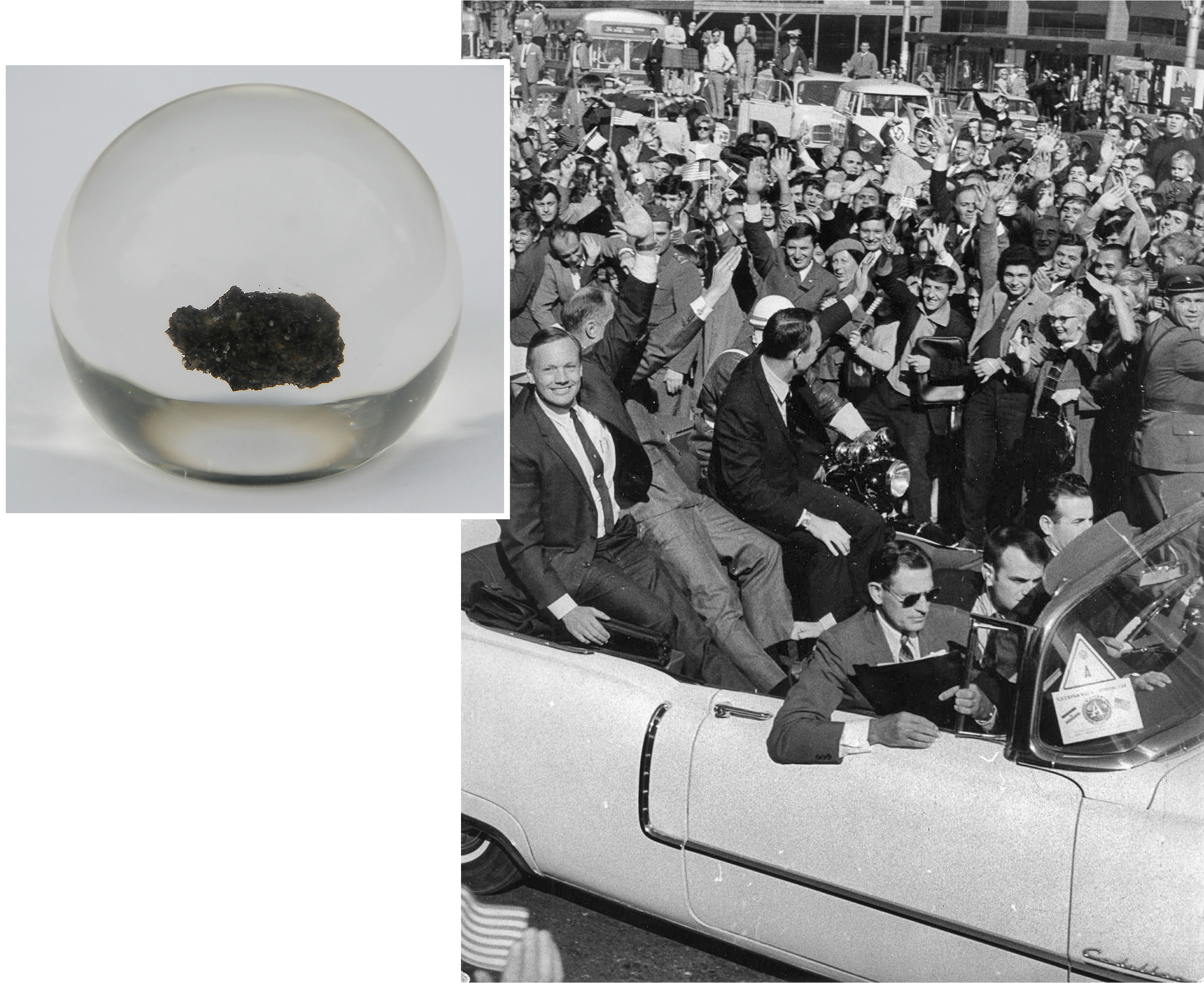 Армстронг, Олдрин и Колинс 18. октобра 1969. године, када су посетили СФРЈ у оквиру „Пута мира“, који је обухватио 22 земље и донели узорке са Месеца.