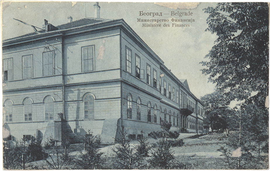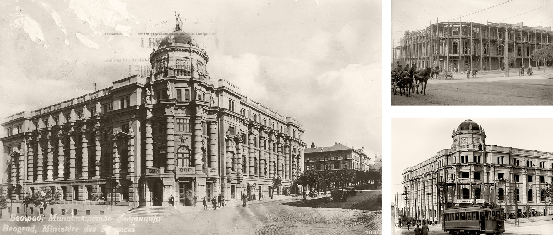 The building of the Ministry of Finance, located at Kneza Miloša Street 20, was erected in 1889 according to the design of Dušan Živanović, and an addition was built in 1924 based on the plans of Nikolaj Krasnov, forming a quadrilateral palace with an inner courtyard.