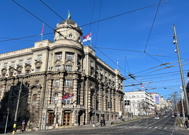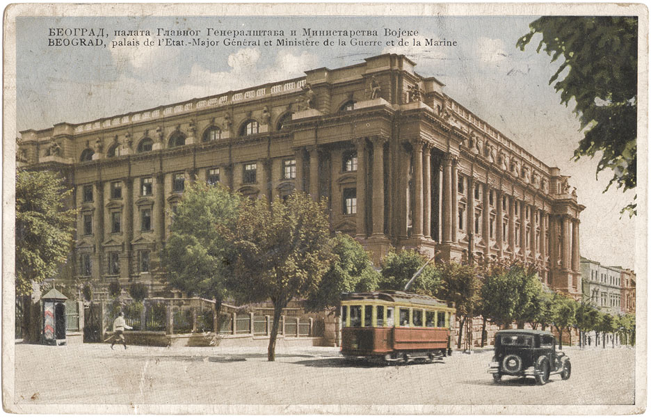 The Old General Staff building at 33 Kneza Miloša Street, also known as the Stone Palace, built 1924-1928, designed by V. Baumgarten. A monumental academicist building, formerly the military headquarters of the Kingdom of Yugoslavia and JNA, it was not hit in the German bombing of 1941. A cultural monument of great importance.