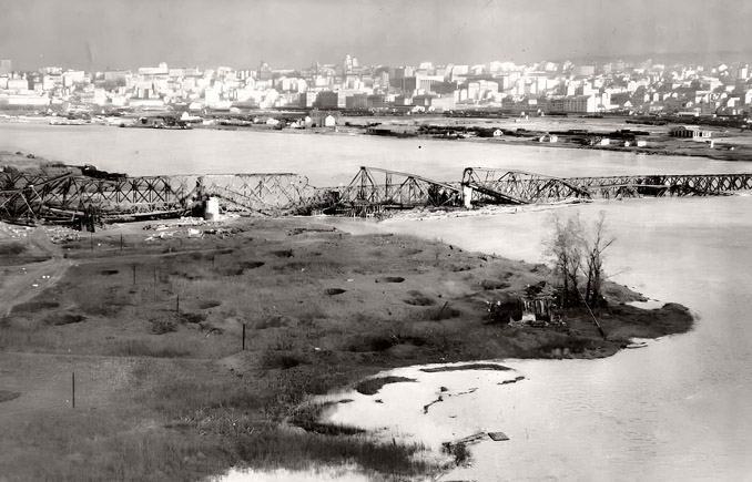 Рушевине железничких мостова које су партизанске снаге затекле по уласку у Београд, након америчког бомбардовања и немачког минирања током повлачења, октобра 1944. године.