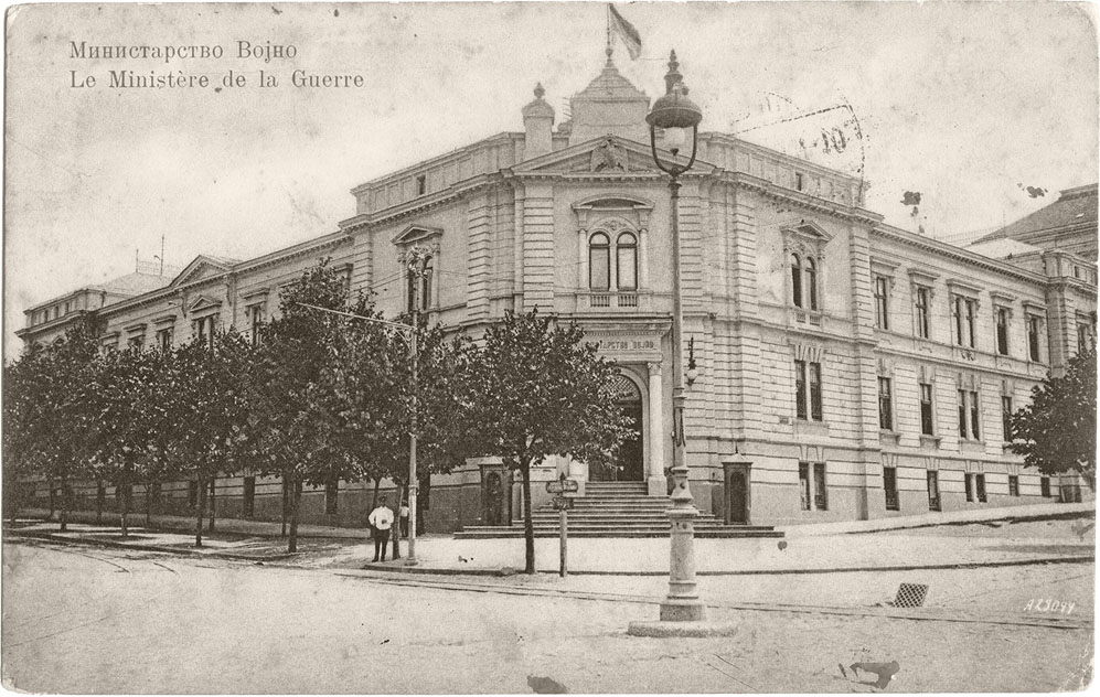 Зграда Министарства војног на углу Немањине и Кнеза Милоша, дело архитекте Јована Илкића из 1895. године. Тешко је оштећена у немачком бомбардовању 6. априла 1941. и касније срушена.